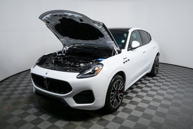 CARFAX One-Owner. Clean CARFAX. Certified. Bianco 2023 Maserati Grecale Modena AWD ZF 8-Speed Automatic 2.0L Turbocharged BLUETOOTH, NON-SMOKER, Grecale Modena, 4D Sport Utility, 2.0L Turbocharged, ZF 8-Speed Automatic, AWD, Bianco, Black w/Leather Seat Upholstery, *Navigation System*, 12-Way Heated Power Front Luxury Seats, 14 Speakers, 3.27 Axle Ratio, 4-Wheel Disc Brakes, ABS brakes, Adaptive suspension, Air Conditioning, Alloy wheels, AM/FM radio: SiriusXM, Apple CarPlay/Android Auto, Auto High-beam Headlights, Auto-dimming door mirrors, Auto-dimming Rear-View mirror, Automatic temperature control, Brake assist, Bumpers: body-color, Compass, Delay-off headlights, Driver door bin, Driver vanity mirror, Dual front impact airbags, Dual front side impact airbags, Electronic Stability Control, Emergency communication system: Maserati Connect, Exterior Parking Camera Rear, Four wheel independent suspension, Front anti-roll bar, Front Bucket Seats, Front Center Armrest, Front dual zone A/C, Front reading lights, Garage door transmitter: HomeLink, Genuine wood console insert, Genuine wood door panel insert, Heated door mirrors, Heated front seats, Illuminated entry, Leather Seat Upholstery, Leather steering wheel, Low tire pressure warning, Memory seat, Occupant sensing airbag, Outside temperature display, Overhead airbag, Overhead console, Passenger door bin, Passenger vanity mirror, Power door mirrors, Power driver seat, Power Liftgate, Power moonroof, Power passenger seat, Power steering, Power windows, Radio data system, Radio: Sonus Faber 860 Watts Premium Audio System, Rain sensing wipers, Rear anti-roll bar, Rear fog lights, Rear reading lights, Rear seat center armrest, Rear window defroster, Rear window wiper, Remote keyless entry, Security system, Speed control, Speed-sensing steering, Speed-Sensitive Wipers, Split folding rear seat, Spoiler, Steering wheel memory, Steering wheel mounted audio controls, Tachometer, Telescoping steering wheel, Tilt steering wheel, Traction control, Trip computer, Turn signal indicator mirrors, Variably intermittent wipers, Voltmeter, Wheels: 20" Machine Polished Forged Etere.